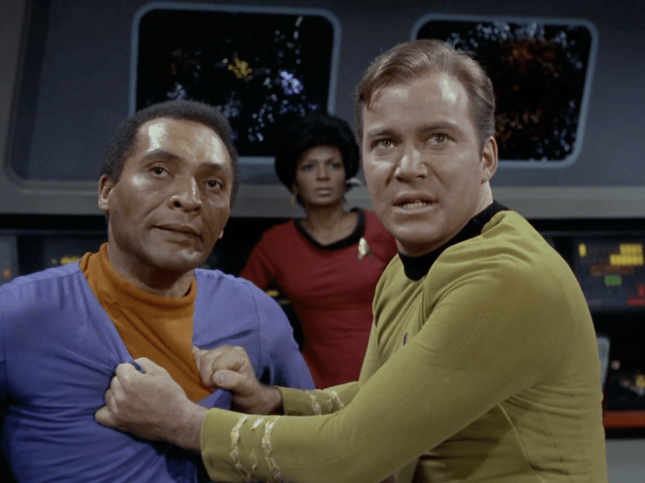Yes, the Spock-McCoy snark there is genuinely funny, but it’s also informed by a deep, meaningful understanding of who Spock is, and of a core theme of the episode: logic and compassion are not mutually exclusive, and an effective, trustworthy leader must be equally capable of both (a theme which, again, seems directly tied to DC Fontana’s unique understanding of Spock’s “humanity,” so to speak). Where this half-century-old episode of television might feel somewhat out of date in its handling of automation and artificial intelligence, it feels as timely as ever in its assertion that humanity (in, again, Star Trek’s broad, species-spanning definition of that term) is precisely what’s needed to keep a starship – and by extension, a society – running smoothly. This theme is seeded throughout even the more minor, moment-to-moment interactions of the episode, as in a brief but charming moment between Sulu and Chekov, as Chekov, finally ordered to pilot the Enterprise back to the station himself after M-5 has seemingly been deactivated, smiles at Sulu and admits, “I’ve been updating that course for hours.” And of course, while the failure to strike a proper balance between logic and compassion is the downfall of Dr. Daystrom (as played by William Marshall, in one of The Original Series’ most compelling and memorable guest performances), the compassion he does feel is, ultimately, the key to deactivating his murderous M-5. Captain Kirk outsmarting a computer is a famously cliched plot point for TOS, but where, say, “I, Mudd” uses it as a cheap deus ex machina, “The Ultimate Computer” instead has Kirk convince the M-5 to deactivate itself rather than put more lives at risk – an argument that is only effective because the M-5 was modeled after Daystrom himself, and because Daystrom’s creation of the M-5 was originally motivated by compassion for his fellow humans, and by an honest desire to protect them, not to hurt them, however lost in pride and resentment he may have become. This is mirrored by Kirk’s trust that his old friend, Commodore Wesley, won’t fire on the Enterprise with its shields down, knowing Wesley well enough to know that “his logical selection was compassion.”