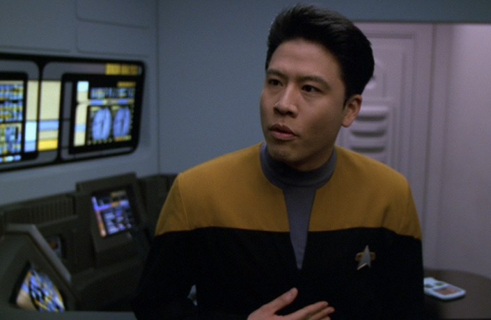 And this idea, that any sentient machine would at least have the capacity for compassion, is driven home, even early in the episode, by the choice to have Robert Picardo play the holographic embodiment of the bomb, just as he normally plays the holographic Doctor. The Emergency Medical Hologram is, himself, an AI with origins not so different from the bomb’s: granted, he was created for medical, humanitarian purposes, and not as a weapon, but he was designed as a tool to be mass produced and used by others, with his artificial intelligence originally serving to make him more useful as a piece of software, not to make him a sentient member of society. However tempting it might be to describe the EMH as Voyager’s answer to The Next Generation’s Data, this has always been a significant difference between the two characters, and for me, it’s one of the most interesting things about the EMH as a concept. Where Data is something of a small-batch, artisanal AI, built by one eccentric genius as a labor of love, the EMH is an early model of a feature meant to become standard issue for starships; where Data was always intended to be a life form with agency of his own (whether those around him recognize that life and agency or not), the EMH was meant to be something more akin to an intelligent tricorder, and was never intended to be recognized as a full-fledged member of the ship’s crew, let alone its chief medical officer. This is the crux of Kim’s argument, as he tries to convince the sentient bomb that it doesn’t have to be a bomb: